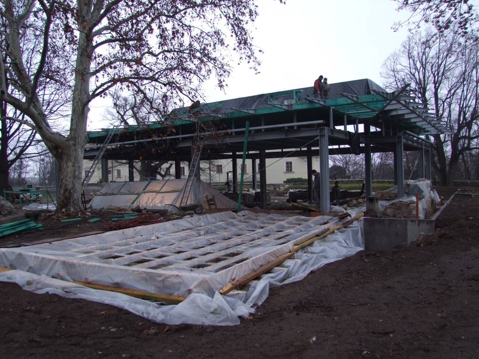 A bronz ágyúöntő olvasztókemence rekonstrukciójának elkészítése, az egész épületrom konzerválása, régészeti földmetszet készítése és bemutatása. Ennek a romkonzerválsái feladatnak az a jelentősége, hogy sikerült a feltáráskor már közvetlenül részt venni a rom állagának megtartásában és azt a feladatot megoldani, hogy a kivitelezésig, romrekonstrukcióig tartó idő alatt a falmaradványok a földmetszet és a helyszínen található leleteken ne alakulhasson ki környezeti károsodás. Ezt azzal lehetett elérni, hogy olyan ideiglenes tetőszerkezetet építettünk a feltárt terület fölé, amely lecsatornázottan elvezette a csapadékvizet, így a romhoz nem került a romhoz a talajból sem vissza nedvesség. A lezárt felületet madaraktól és egyéb állatoktól és minden környezeti szennyeződéstől sikerült megvédeni. És a védelem egyik legfontosabb eleme a germicid lámpatestek beépítése, amely a feltárt romfelületek gomba, moha, zuzmó és egyéb növényi telepeinek kialakulását megakadályozta, sterilizálta a felületeket. Ezzel a védelemmel el lehetett érni a feltárt terület kiszáradását, a felületekre történő sók kivándorlását és a biológiai kártevők elszaporodását. Biztosítottuk a szakértők és döntéshozók könnyű hozzáférését a területhez.